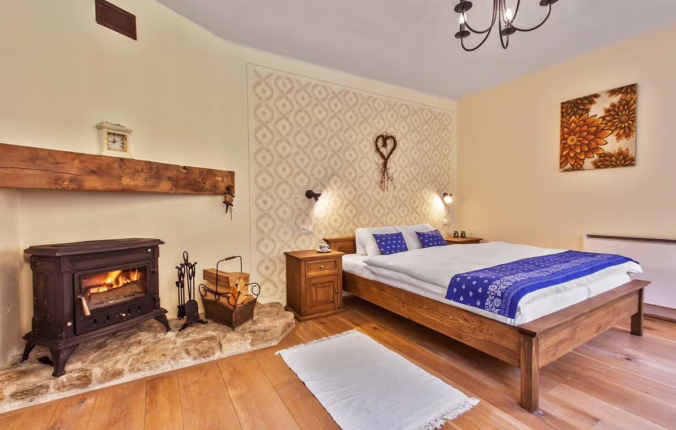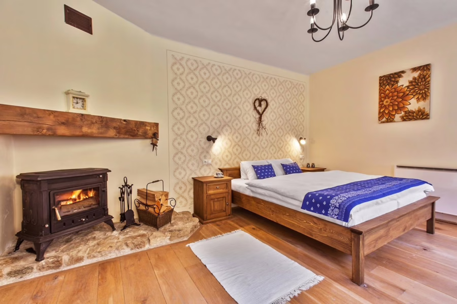 útulné zariadenie, kde sme sa cítili príjemne, v spoločenskej miestnosti sme si kúrili v krásnej kachľovej peci a mali sme s manželkou ,,telku s plameňmi"