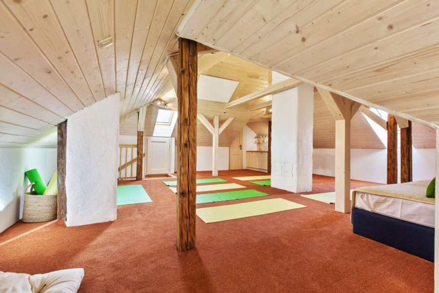 Príjemný a harmonický priestor s premyslenou dispozíciou Vám poskytne priestor pre všetky Vaše aktivity od stravovania v spoločenskej miestnosti a v záhradnom altánku, cvičení, prednášok či meditácií až po odpočinok v privátnom wellness s výbornými masážami.